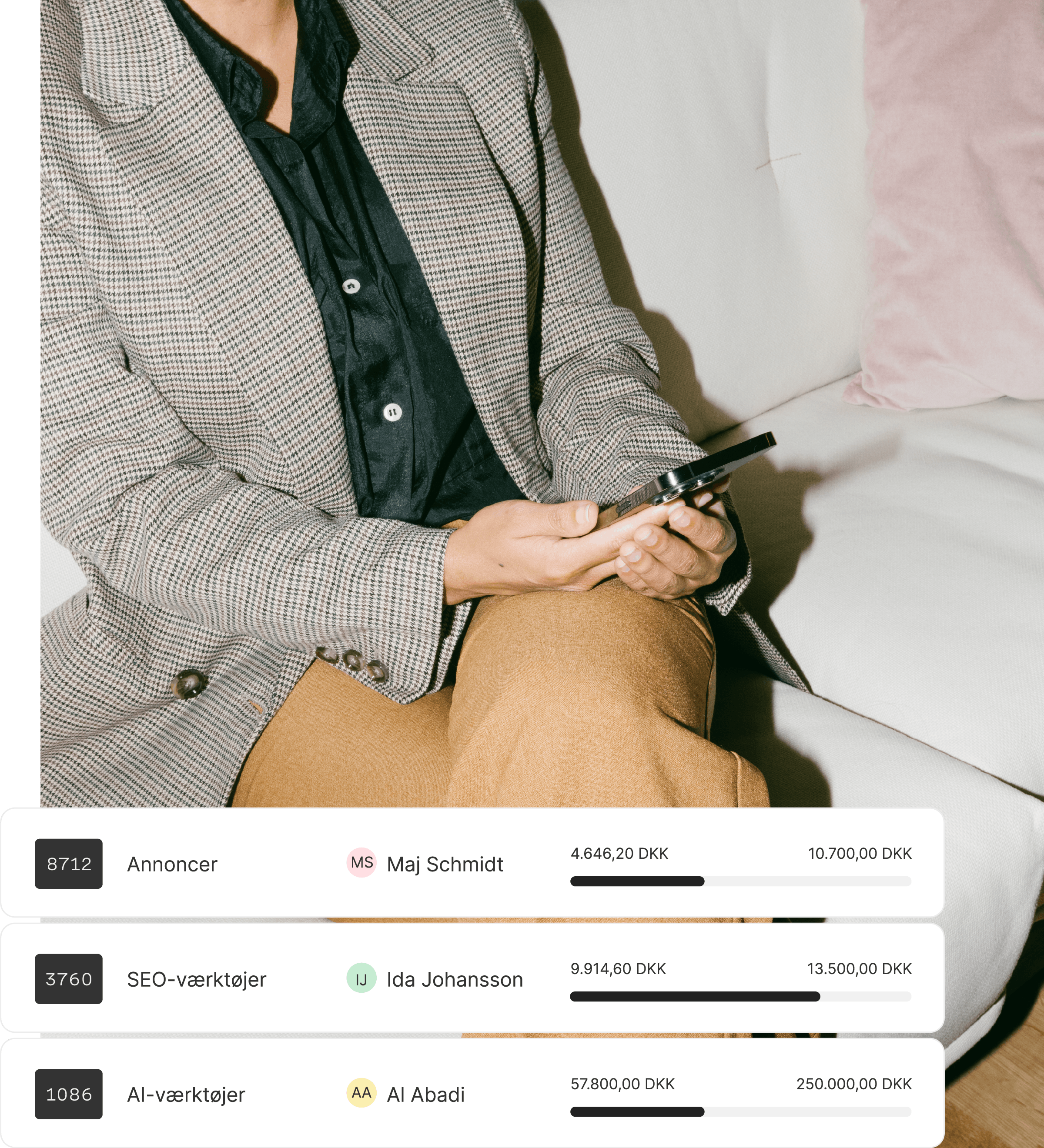 Giv dit team mulighed for at skabe vækst i virksomheden, samtidig med at de overholder marketingbudgettet. Vink farvel til fælleskort og langsomme godkendelsesprocesser, og skift kedeligt administrationsarbejde ud med automatiserede rapporter.