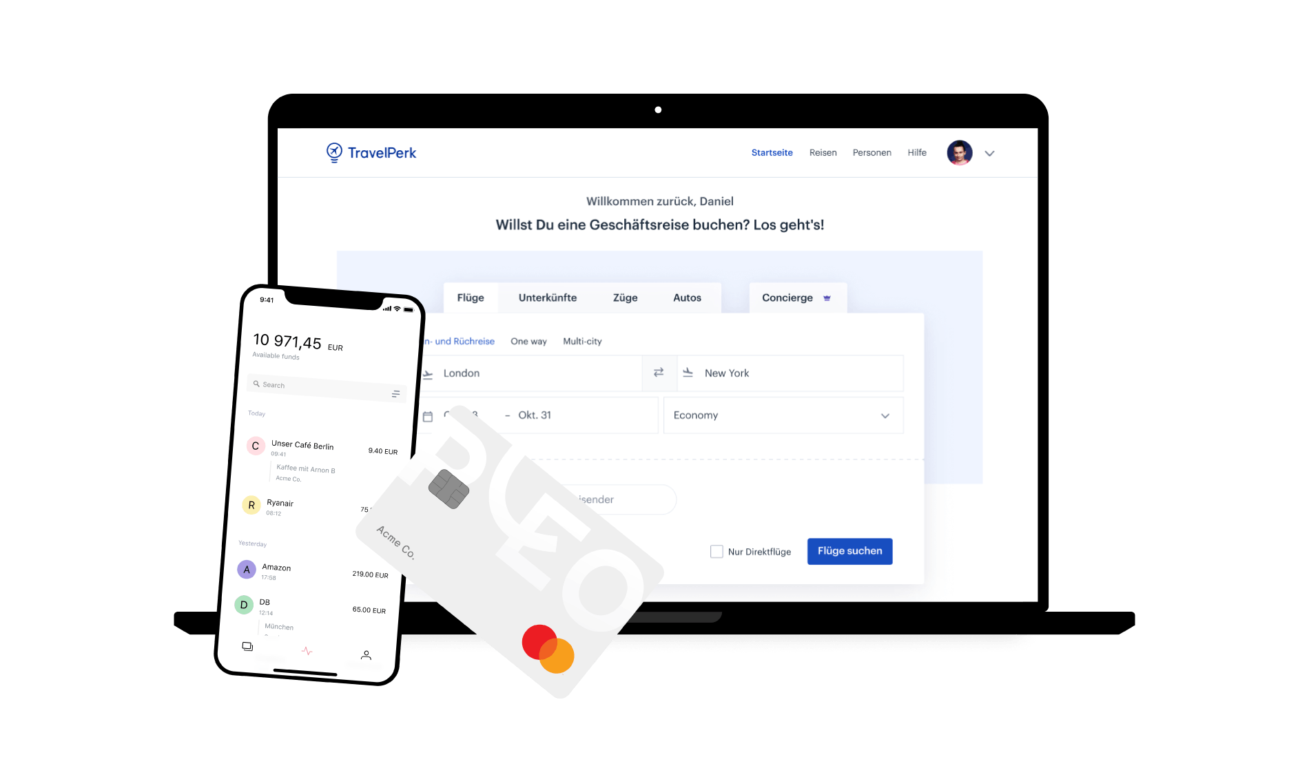 Buchen Sie über TravelPerk und wählen Sie aus dem weltweit größten Inventar an Angeboten für Geschäftsreisen aus. Nutzen Sie Ihre Pleo-Karte und koordinieren Sie Ihre Ausgaben und Rechnungen an einem Ort – ganz egal, wo Sie sich gerade befinden.