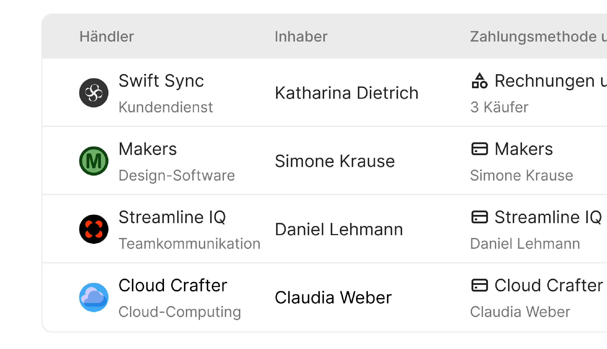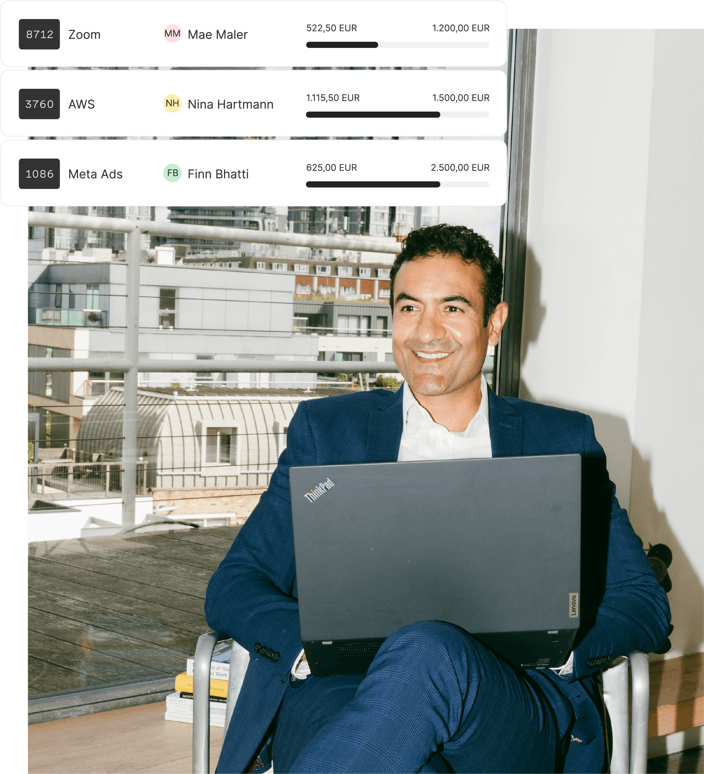 Vergeben Sie an Teams oder Mitarbeitende zweckgebundene Karten für den Kauf von Software. Mit Händlerbeschränkungen und einfachen Übertragungsmöglichkeiten sorgen Sie für höchste Sicherheitsstandards und behalten stets den Überblick über alle Software-Abonnements.