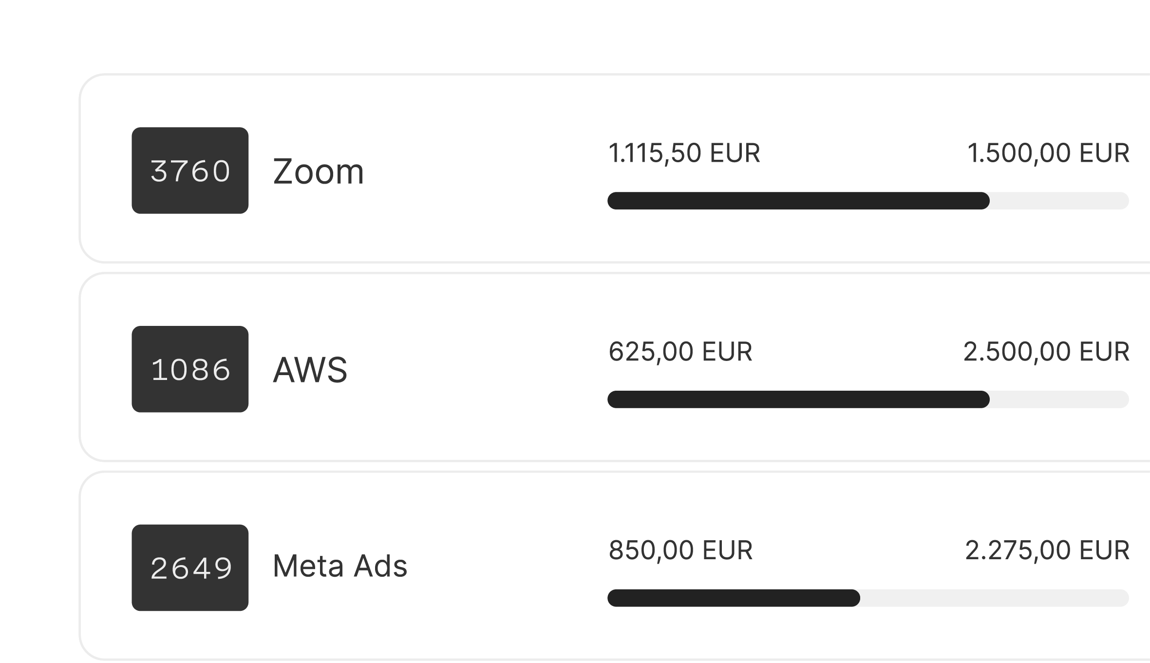 Behalten Sie Softwarekosten im Griff und stellen Sie sicher, dass geschäftskritische Finanzprozesse unterbrechungsfrei laufen, indem Sie Budgets zuweisen und Ausgabenkontrollen für zweckgebundene Karten festlegen.