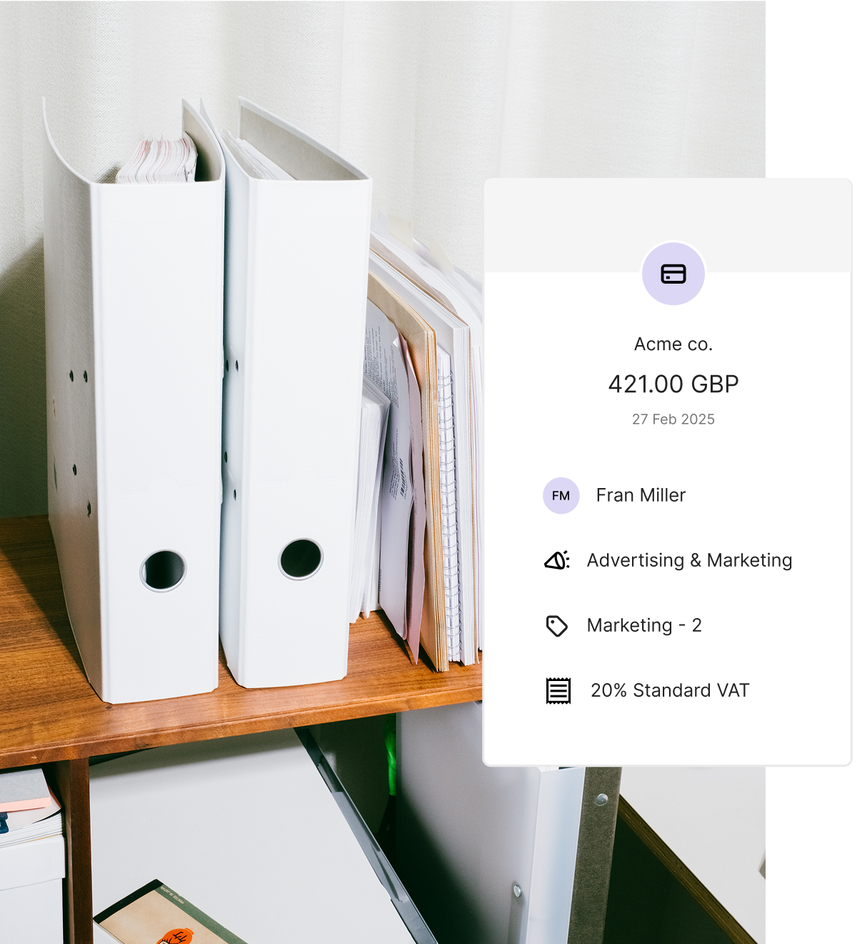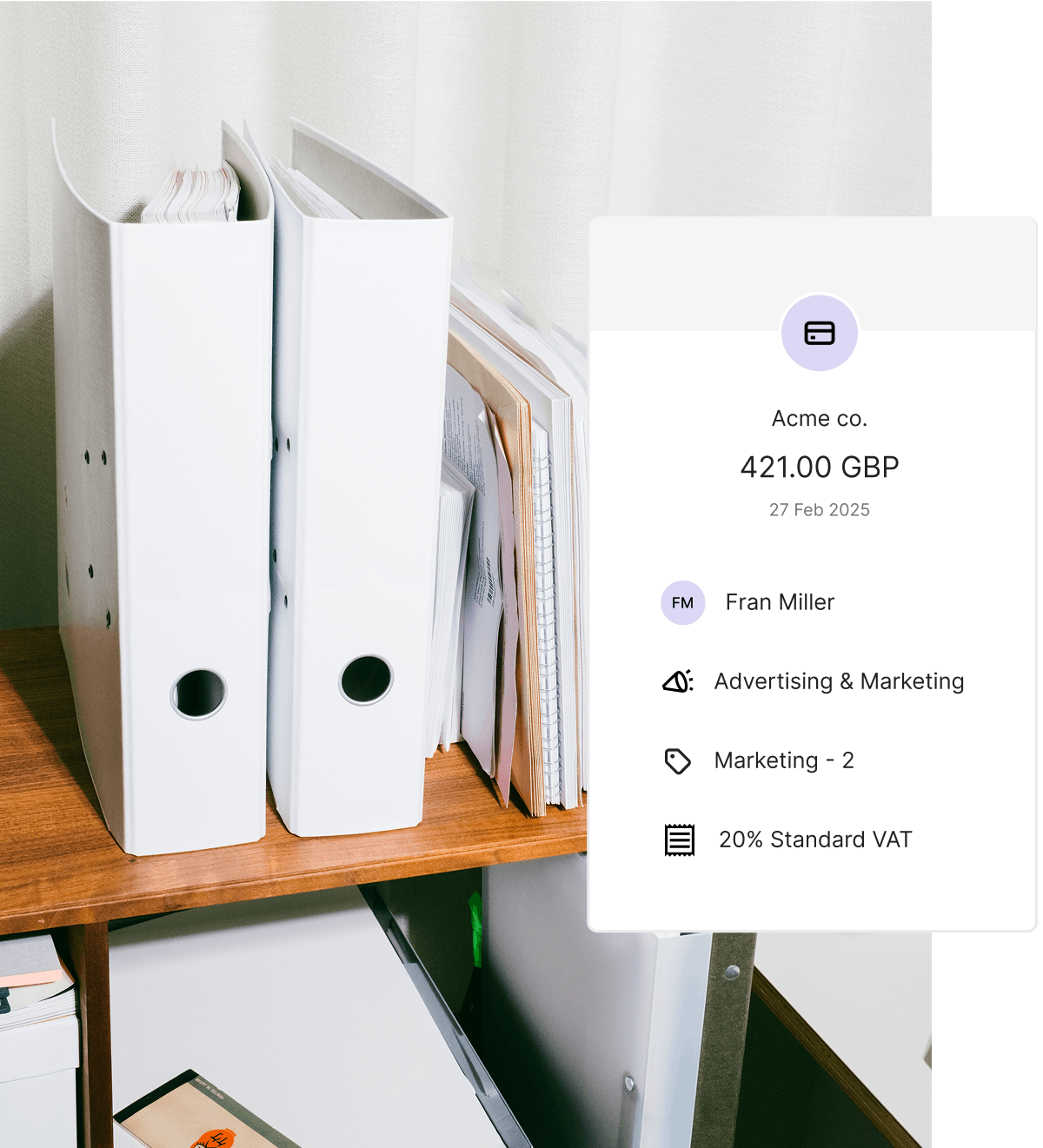 Pleo automatically applies the right category and VAT code to every transaction, so FreeAgents gets clean, accurate data, ready to reconcile.