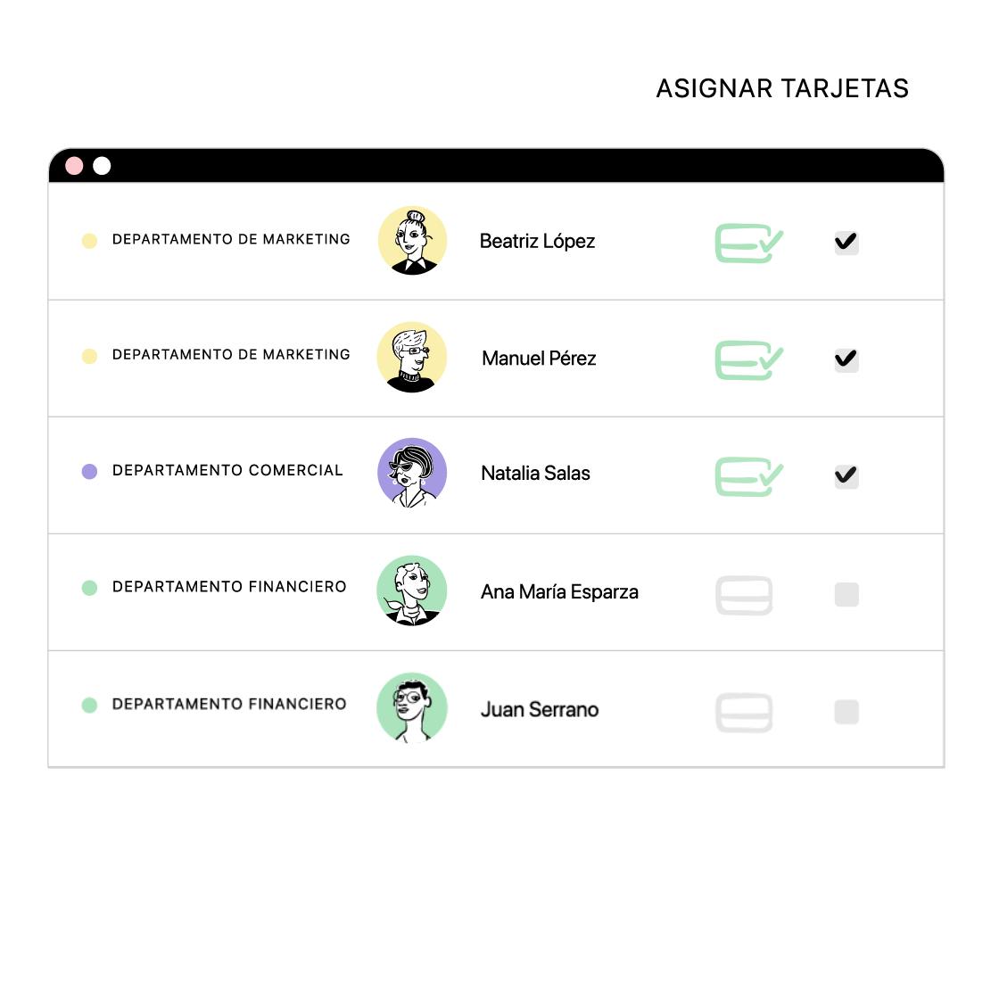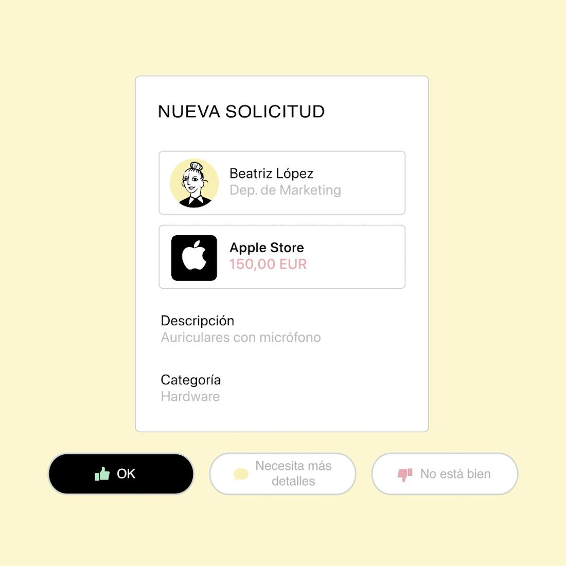 La vista de administrador te permitirá revisar todas las compras de la plantilla en tiempo real. Y si algo no parece estar bien, siempre estás a un click de pedir más informacion o congelar la tarjeta.