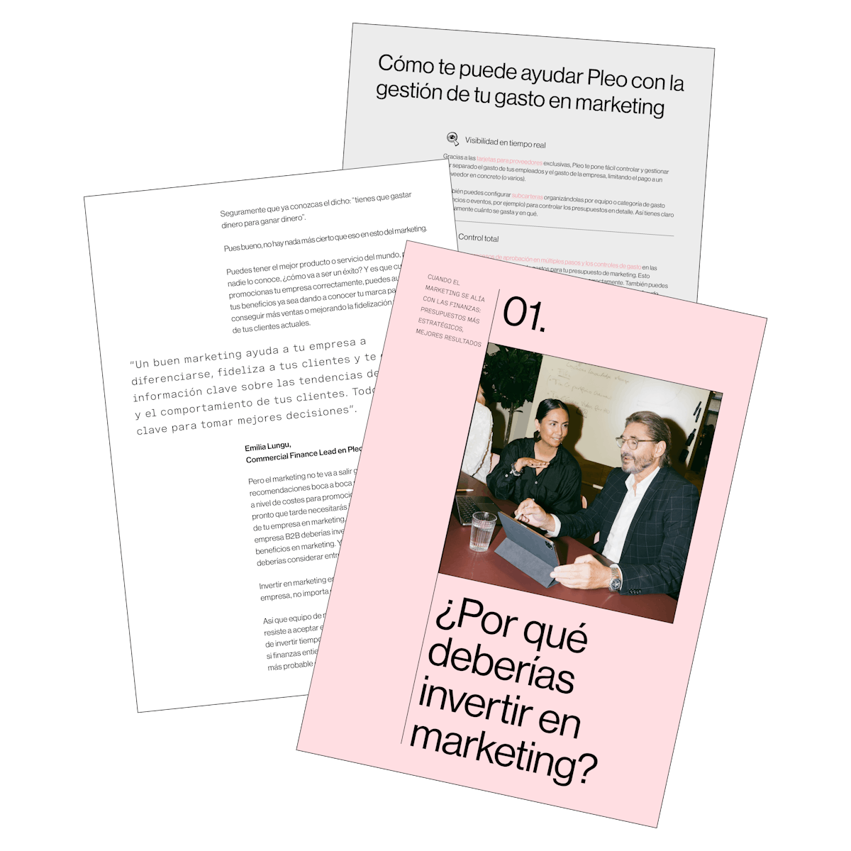 - Descubre cómo Pleo puede ayudarte a pagar, registrar y gestionar tus gastos en marketing (tanto fijos como variables), en publicidad digital y en tus herramientas SaaS.