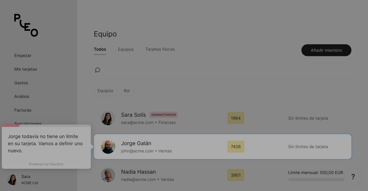 Controla la actividad de los titulares de las tarjetas, invita a nuevos miembros al equipo y elimina tarjetas en cuestión de segundos.