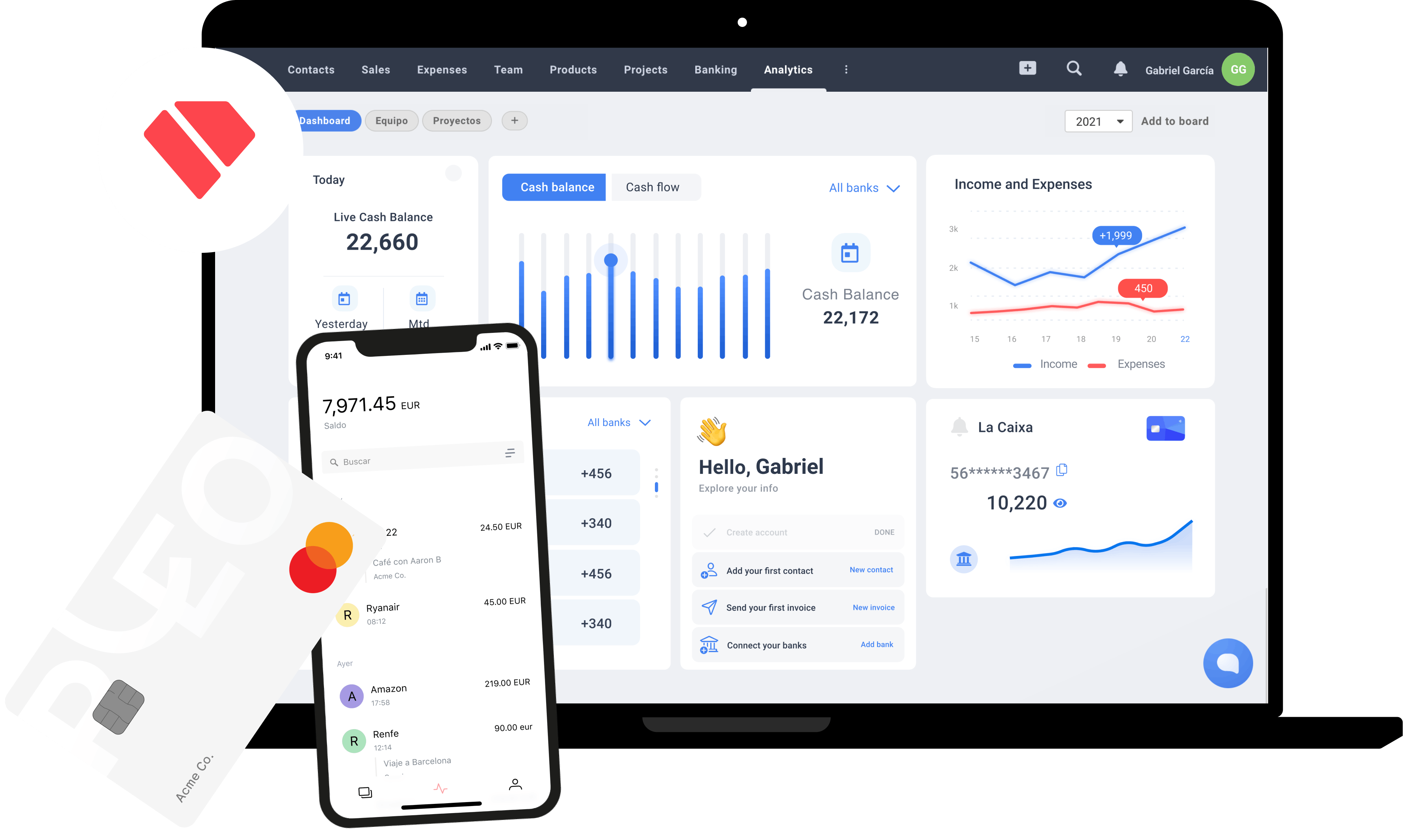 Gestionar los gastos manualmente puede llevar a errores. Pero si lo integras con Holded, todo ocurrirá automáticamente (y en vivo).
