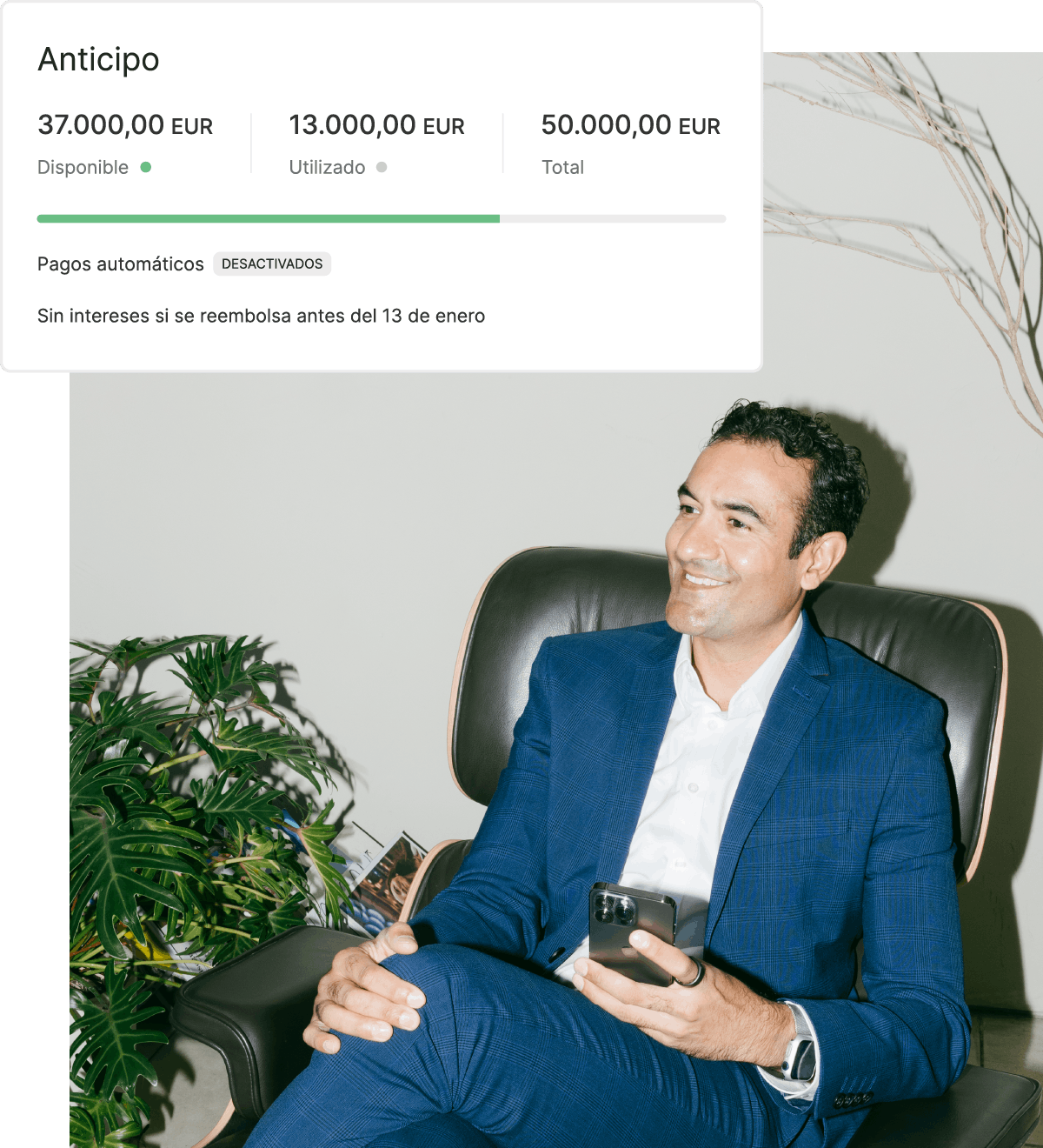 Asegúrate de que tu empresa siga creciendo al evitar gastos innecesarios en todos los frentes. Con Pleo Anticipo, no pagarás ni un céntimo de interés en tu crédito si reembolsas el saldo antes de final de mes.