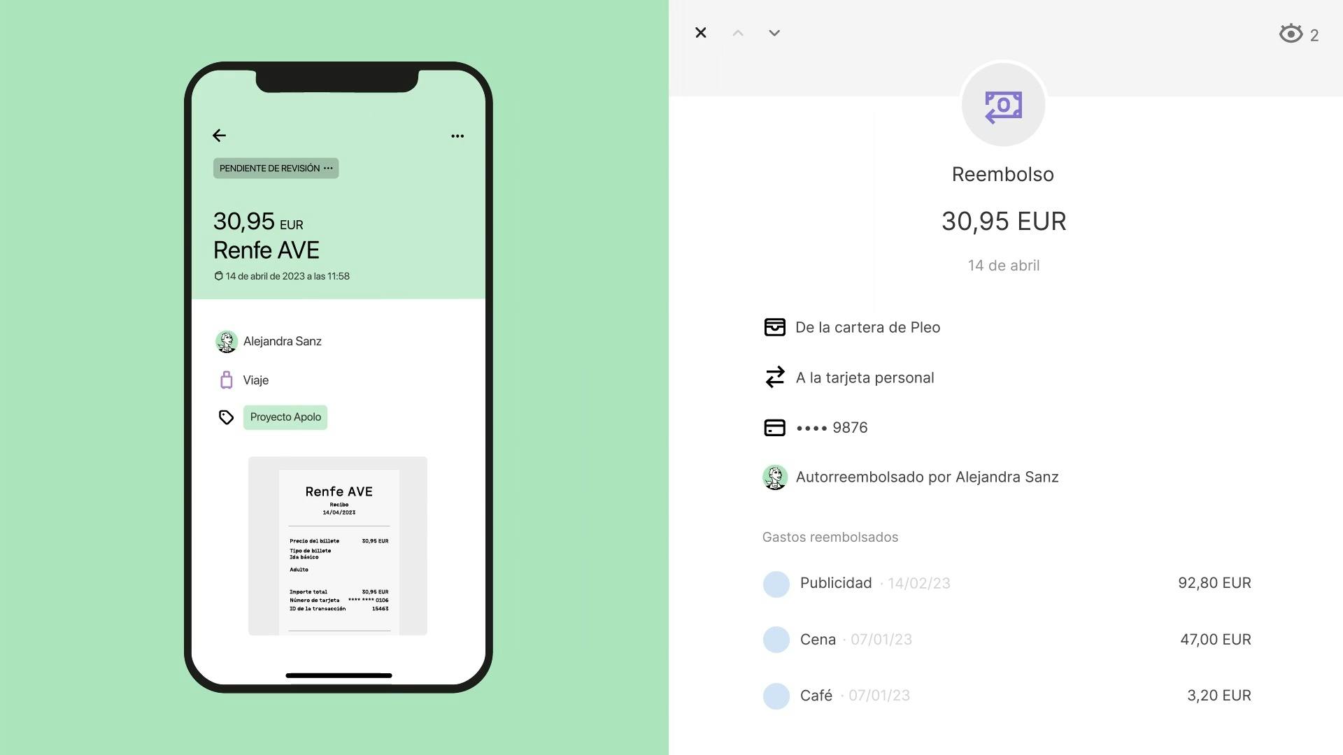 En algunas empresas (normalmente más grandes), no todo el mundo necesita una tarjeta de empresa. Y gracias a Pleo no tendrán que adelantar su dinero por mucho tiempo. Les bastará con añadir el gasto en la app para recibir un reembolso.