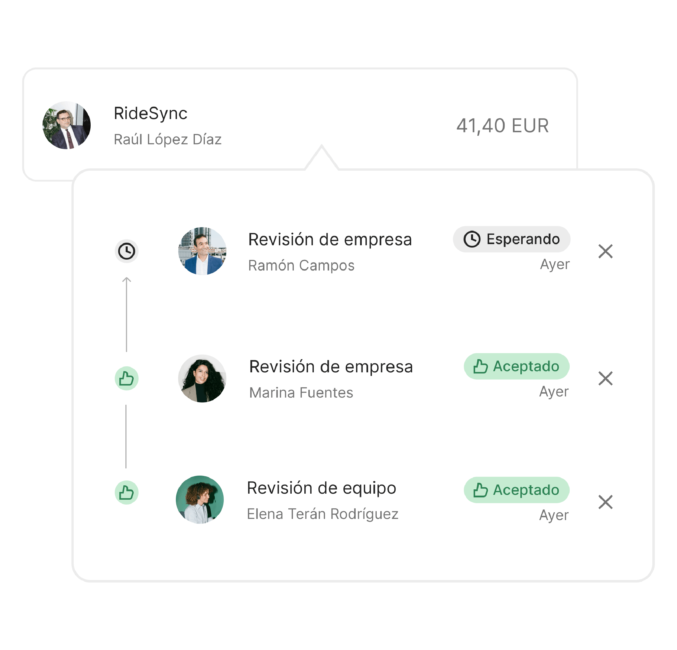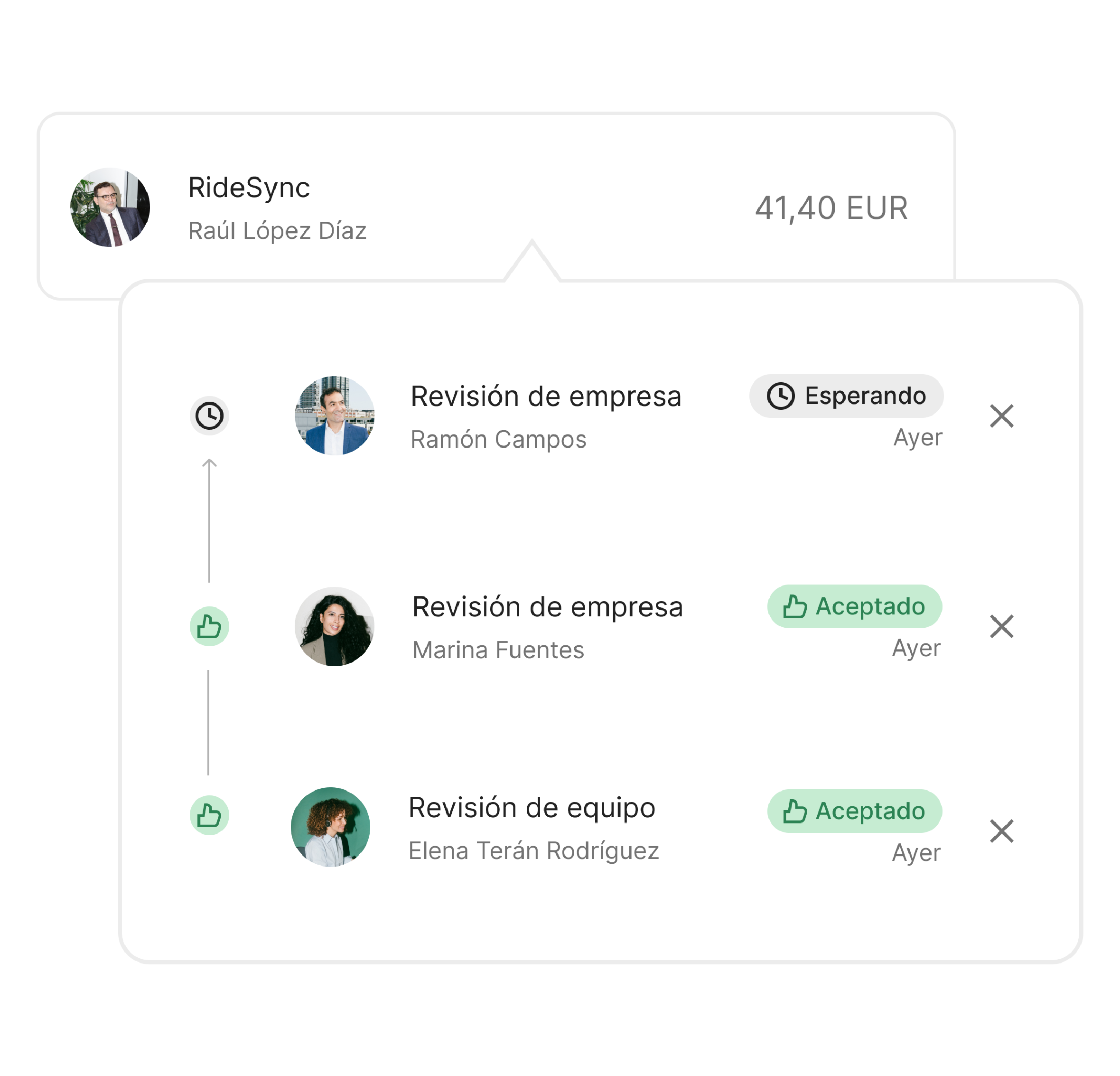 Detecta gastos fuera de lugar con procesos de aprobación flexibles. Revisa y aprueba todo, desde gastos con tarjeta y reembolsos hasta facturas, sin trabajo manual ni el caos de los e-mails.