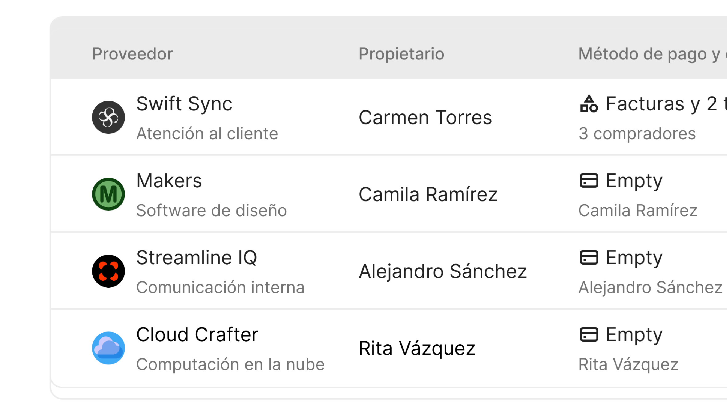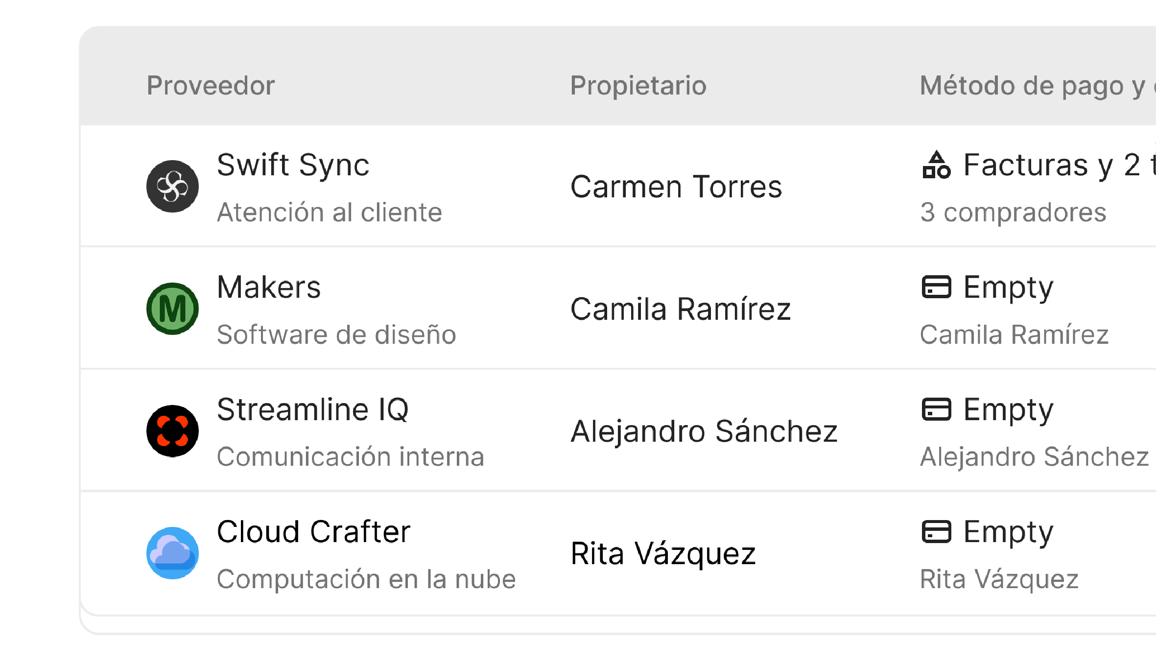 Entrega a los equipos o empleados tarjetas para proveedores exclusivas para pagar por softwares. Con bloqueos de proveedor y transferencias de propiedad fáciles, tus gastos serán seguros y tendrás control total sobre cada suscripción.