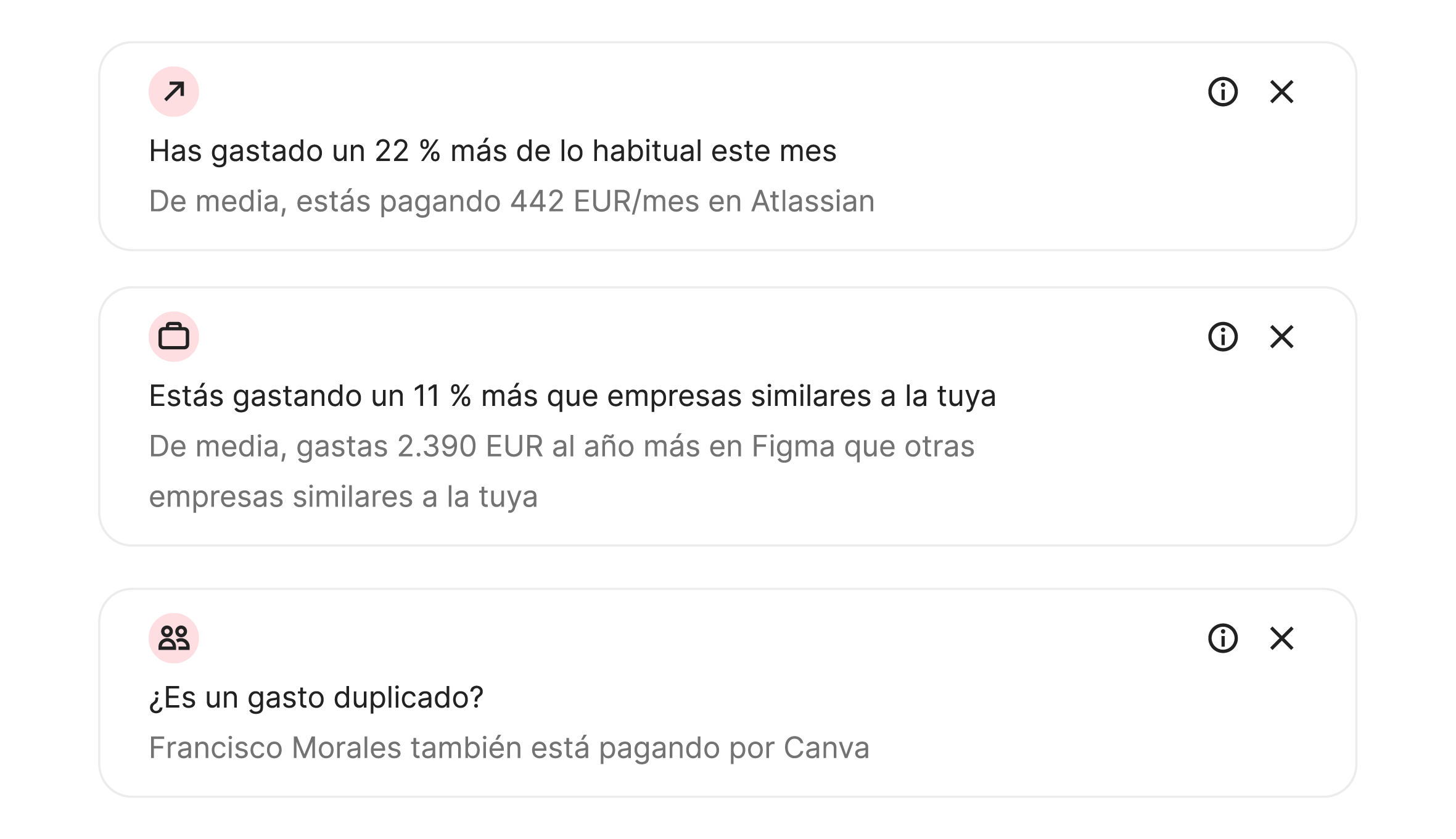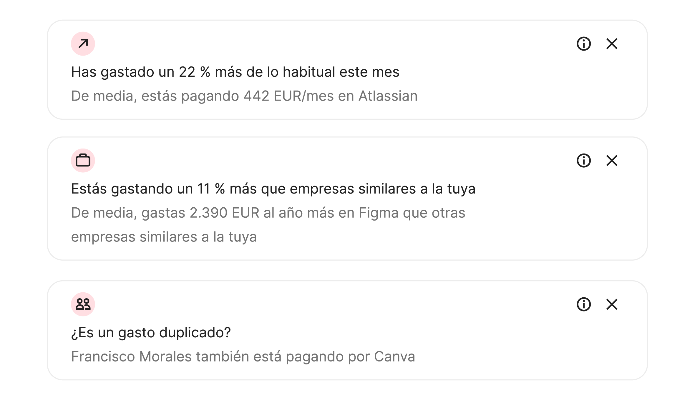 Recibe consejos generados por la IA para optimizar el gasto, desde detectar suscripciones duplicadas hasta posibles pagos excesivos.