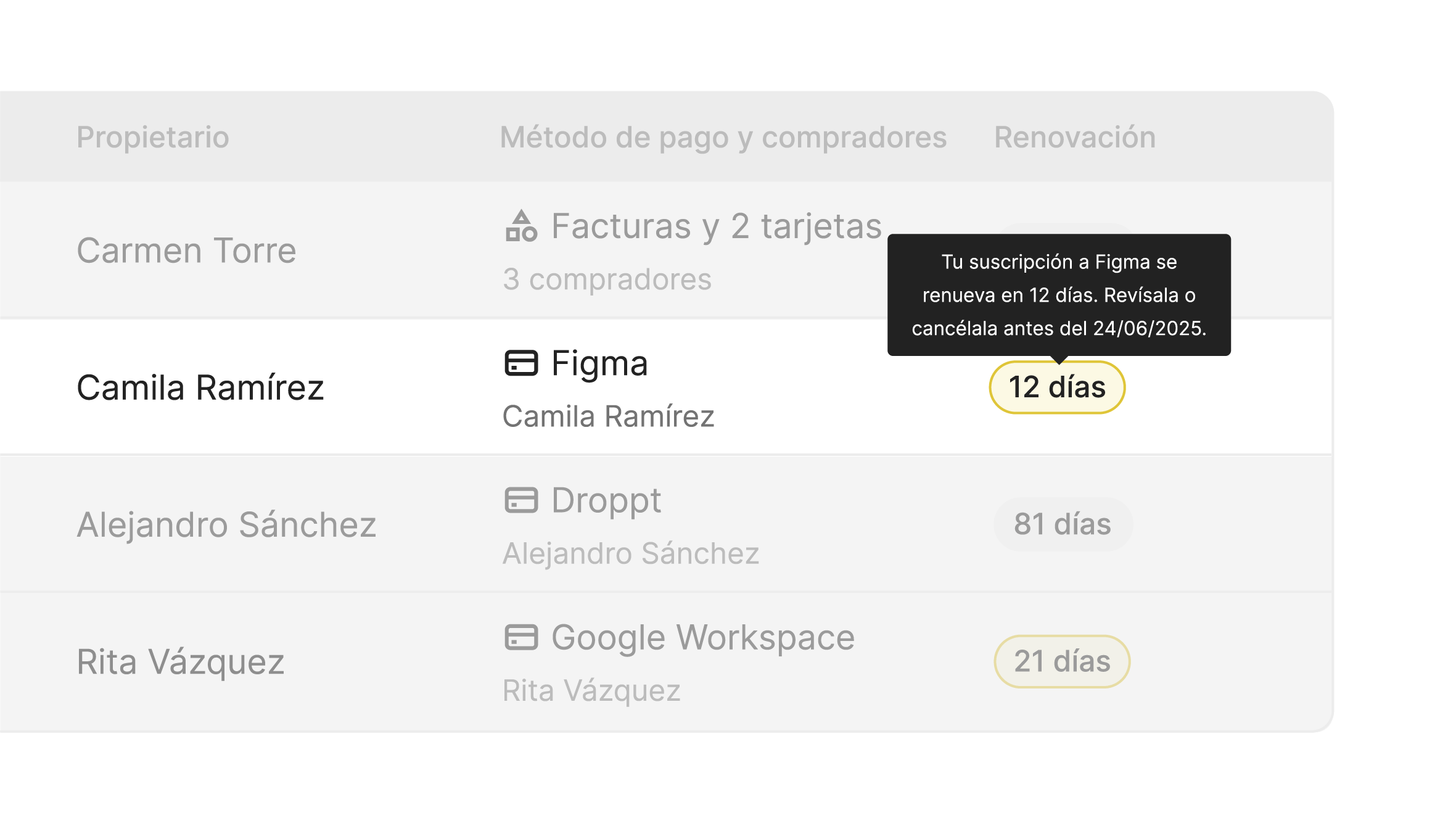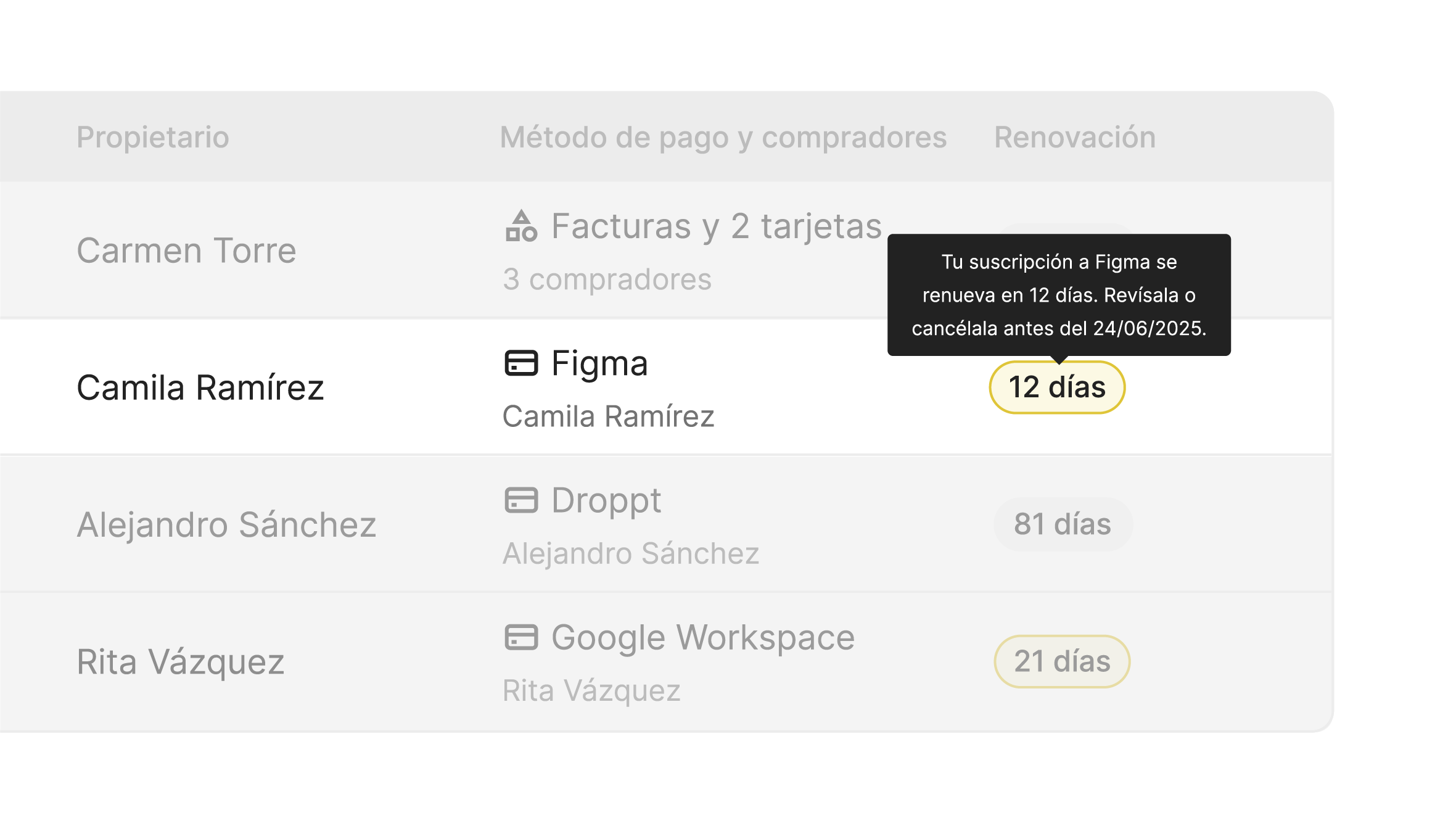 Recibe recordatorios automáticos para futuras renovaciones, con suficiente tiempo para revisar contratos y negociar los mejores términos.