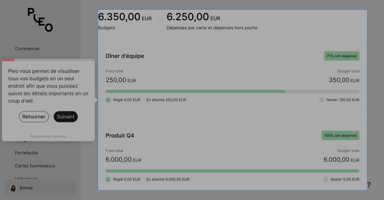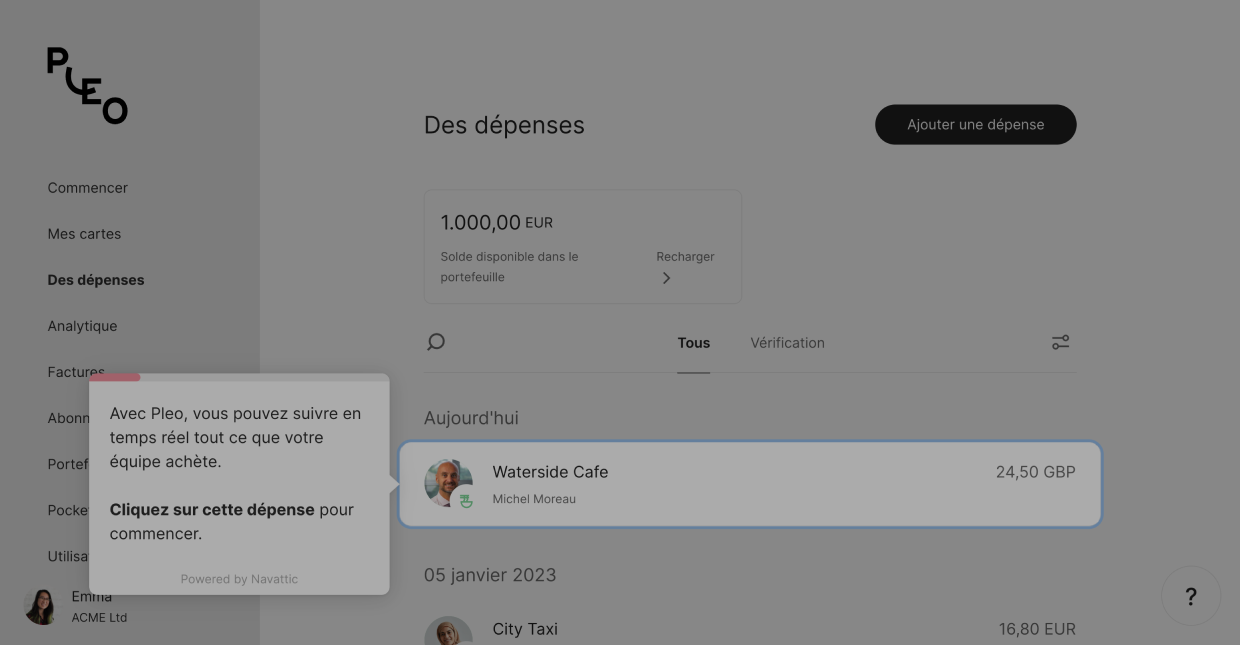 Dès qu'un membre de l'équipe utilise sa carte Pleo, une dépense est enregistrée.