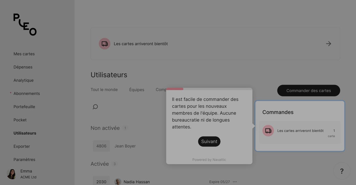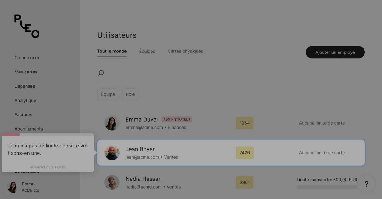 Profitez d'un aperçu sur l'activité des titulaires de cartes, invitez de nouveaux collaborateurs et supprimez des cartes en quelques secondes.