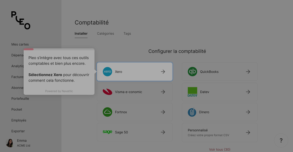 Grâce à plus de 30 intégrations comptables différentes, Pleo fonctionne sans problème avec les outils que vous utilisez déjà.