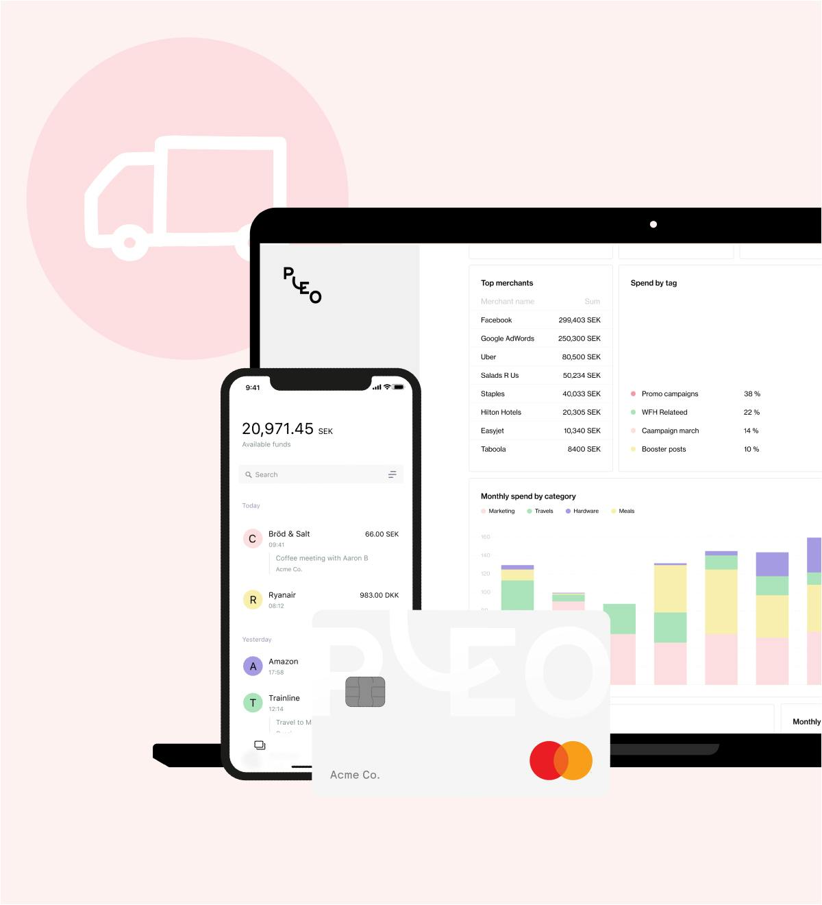 Pleo gives you real-time overview of all drivers’ expenses. Replace fuel cards with smart company cards, spending limits and instant notifications.