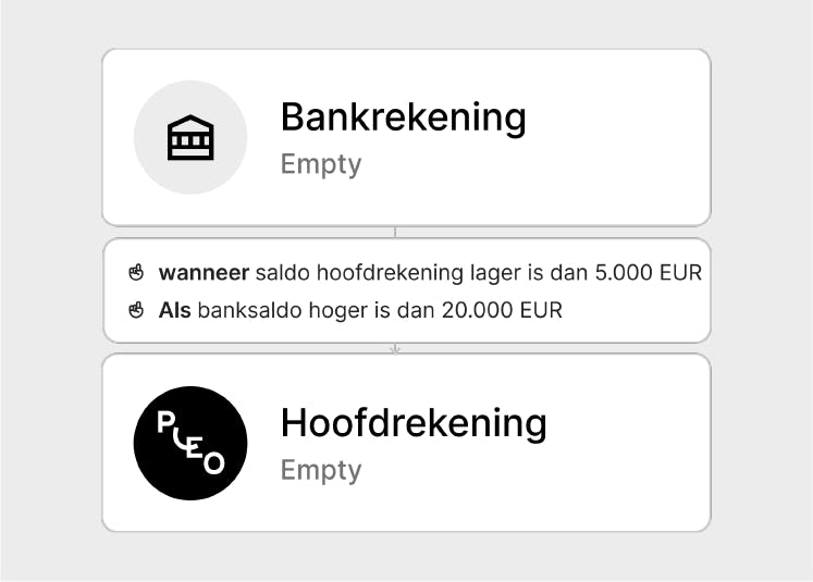 Houd je rekeningen automatisch gevuld. Stel regels in om saldo aan te vullen op je hoofd- en subrekeningen van Pleo, direct vanaf je bank.