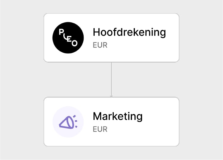Met Pleo-subrekeningen scheid en beheer je eenvoudig je bedrijfsgeld. Maak aparte budgetten per teams, project of kostenpost. Zo houd je grip op je geld en reserveer je voldoende budget voor grote uitgaven.