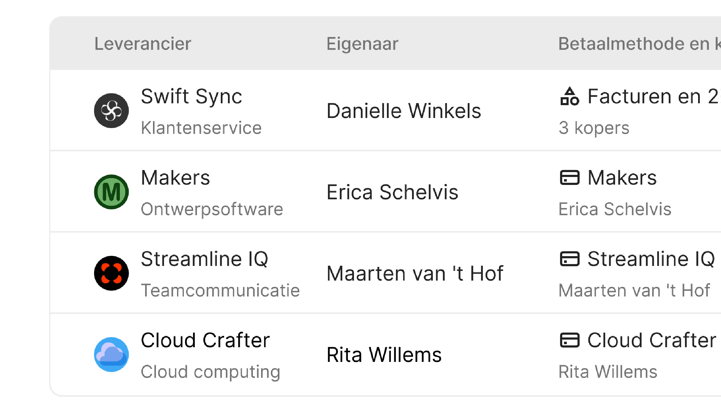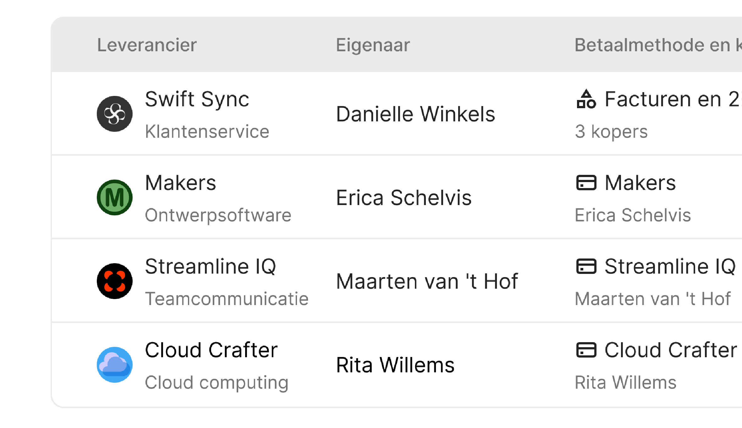 Geef teams of medewerkers een aparte abonnementskaart voor softwareaankopen. Dankzij leveranciersvergrendelingen en eigendomsoverdracht houd je grip op elk softwareabonnement en blijven je uitgaven veilig.