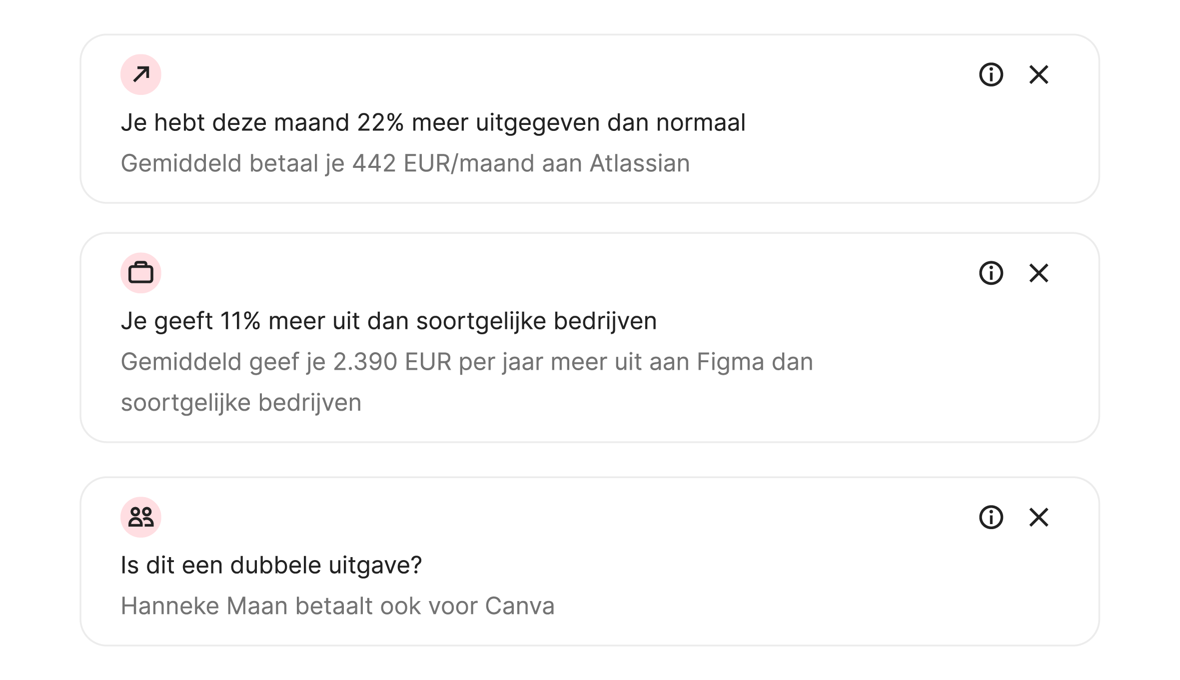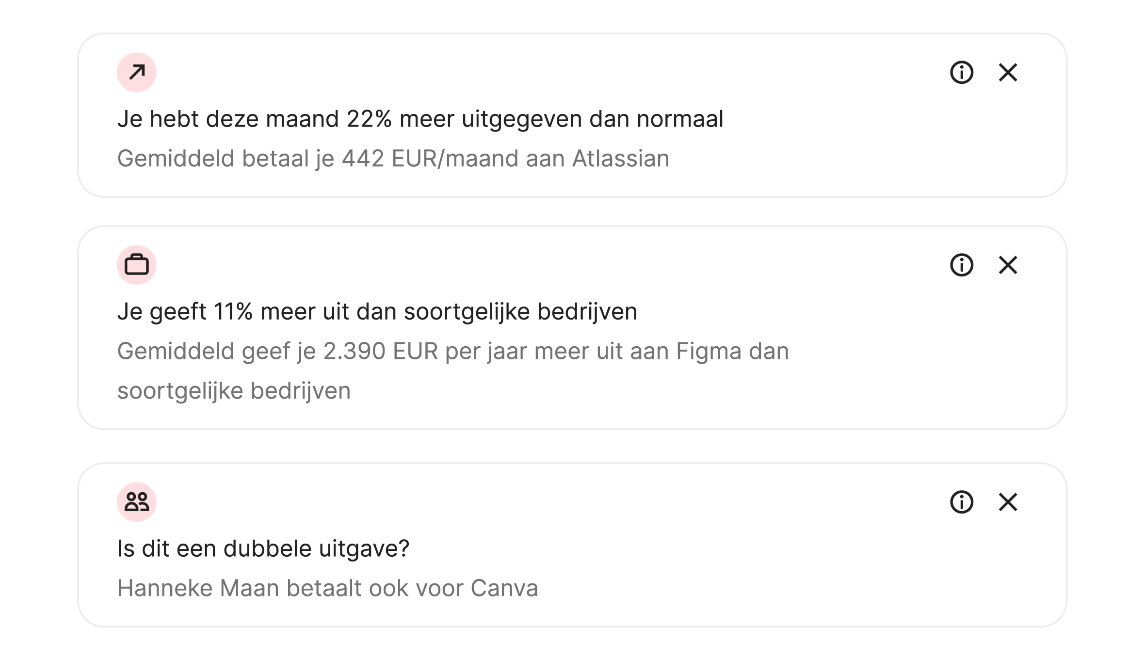 Krijg Ai-gestuurde inzichten om je budgetten te optimaliseren. Van het identificeren van dubbele abonnementen tot het in kaart brengen van overtollige betalingen.