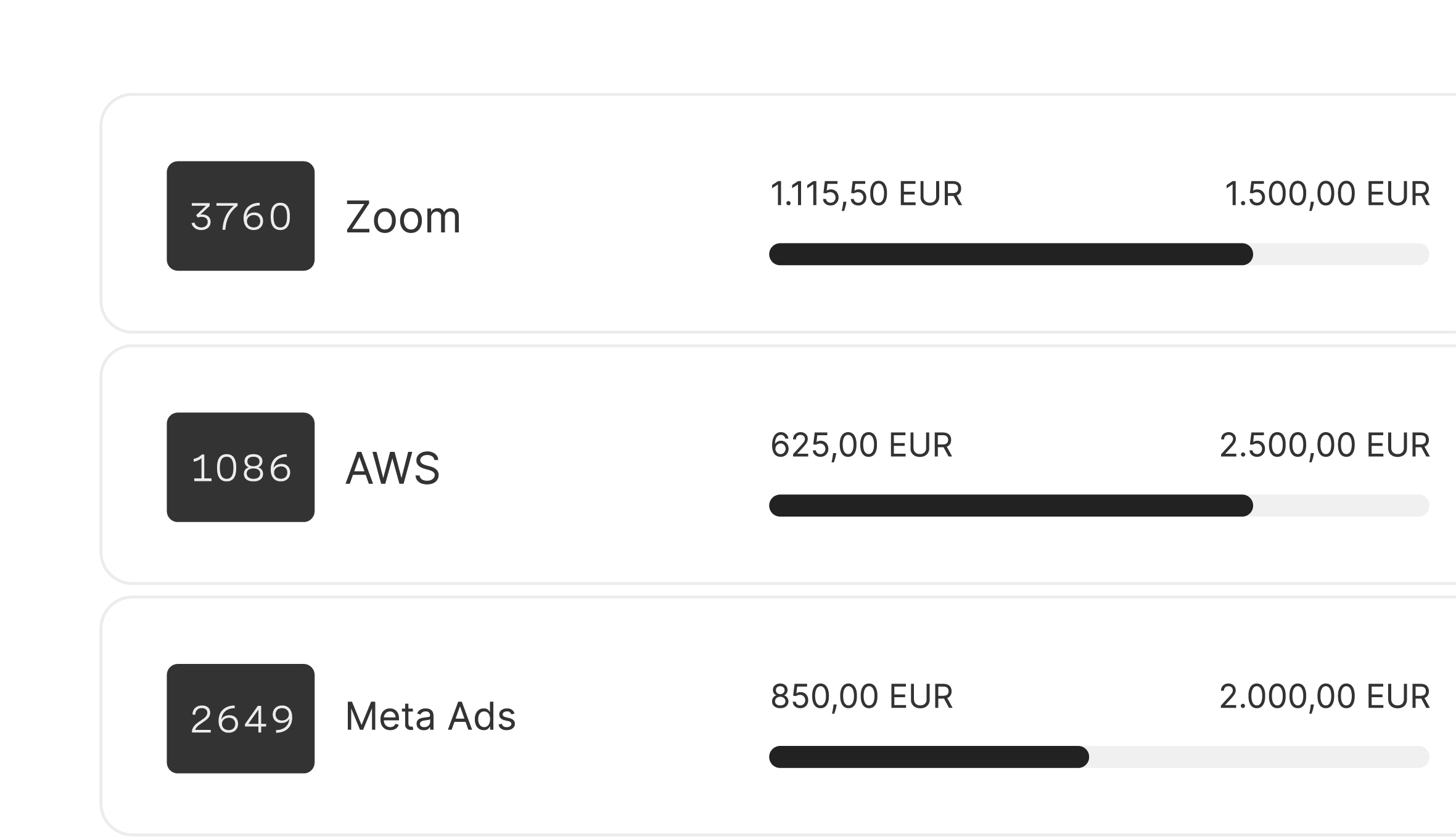 Wijs specifieke budgetten toe en stel uitgavenlimieten in voor elke abonnementskaart. Zo weet je zeker dat bedrijfskritische projecten niet verstoord raken en houd je controle over je softwarekosten.