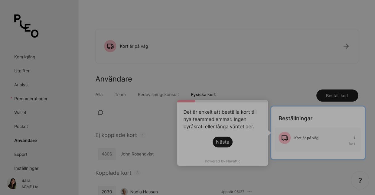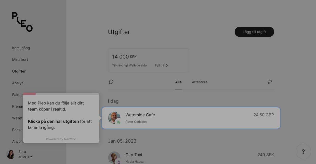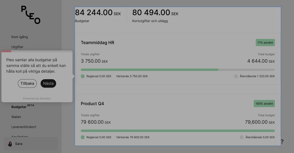 Utgifter registreras direkt när en teammedlem använder sitt Pleo-kort.