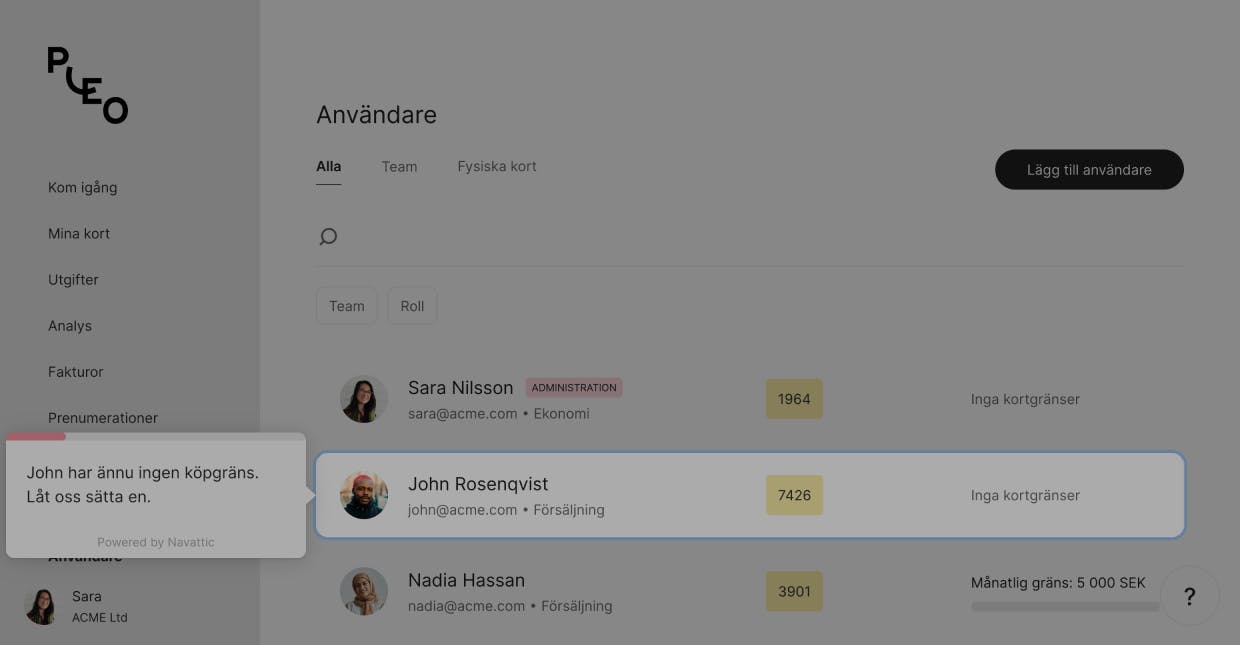 Få en översikt över kortinnehavares aktivitet, bjud in nya teammedlemmar och radera kort på några sekunder.