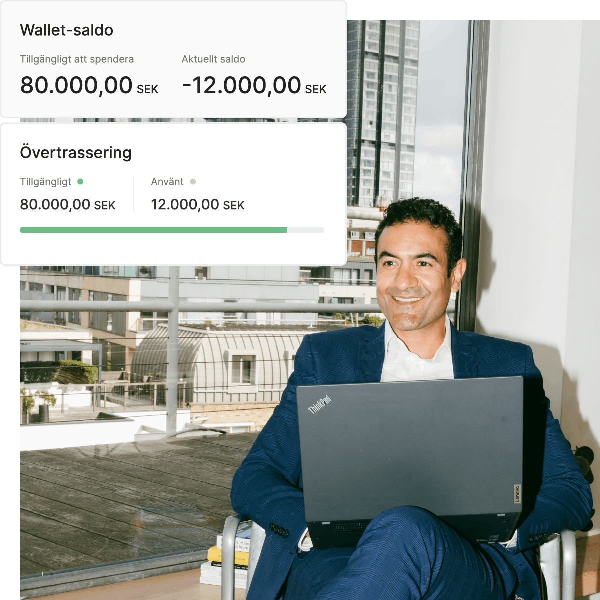 Med Pleo Övertrassering kan du göra betalningar även om ditt Wallet-saldo är lågt eller negativt. Du kan använda det för att täcka kortutgifter, utläggsutbetalningar och fakturabetalningar.